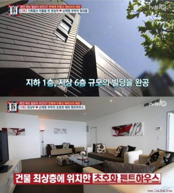 Chương trình "The list" của đài truyền hình cáp tvN chuyên đưa ra những bảng xếp hạng liên quan đến đủ mọi mặt đời sống của sao Hàn. Trong buổi phát sóng ngày 9/5 vừa qua, "The list" đã công bố những "đại gia bất động sản" lớn nhất của làng giải trí Hàn. Vợ chồng Kwon Sang Woo - Son Tae Young đã vượt mặt cặp đôi đang lên Song - Song của "Hậu duệ mặt trời" để soán ngôi đầu bảng.